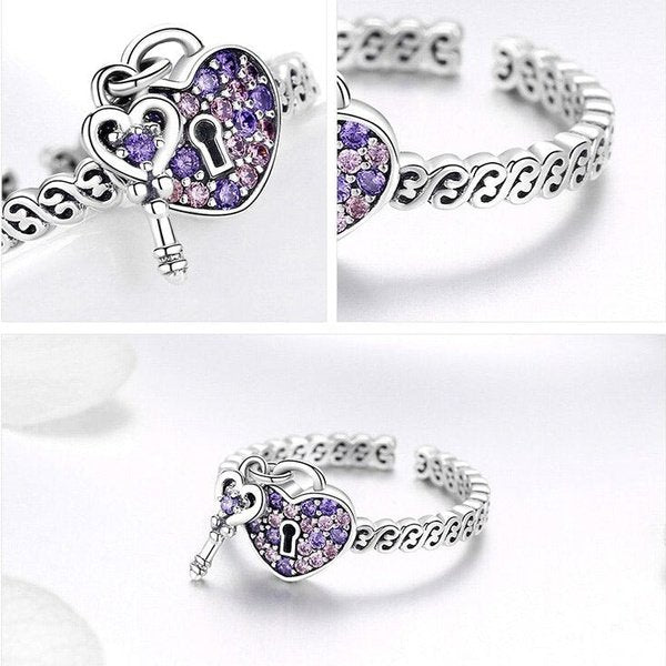 Anel Ajustável Cadeado de Coração Prata