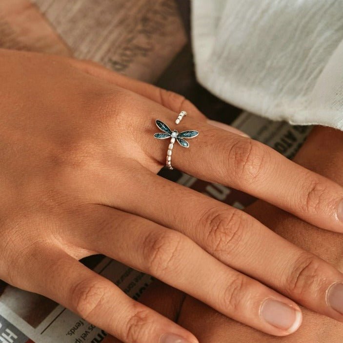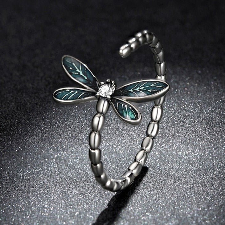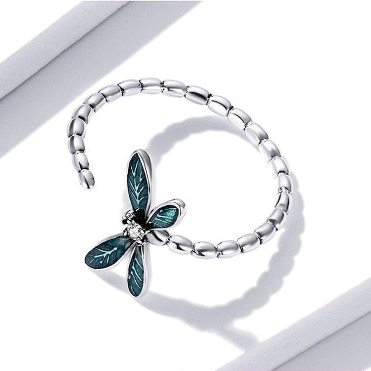 Anel Ajustável Prata Libélula