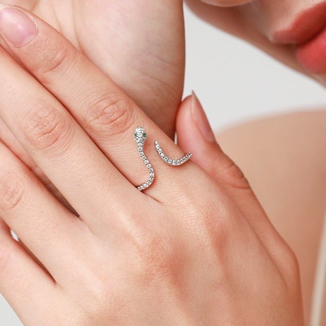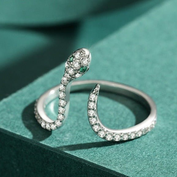 Anel Ajustável Prata Cobra Serpente de Zircônias