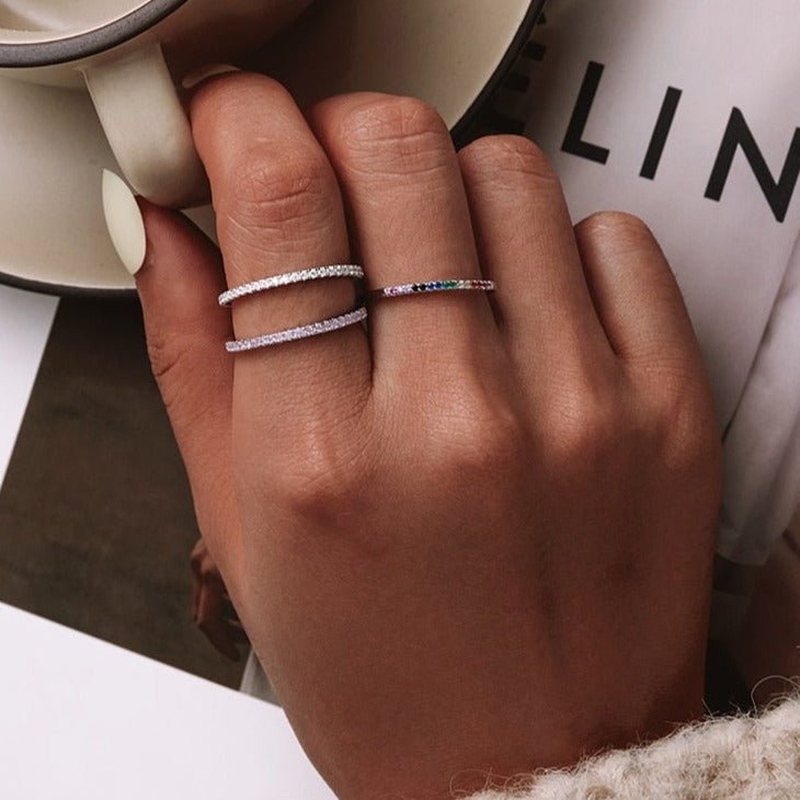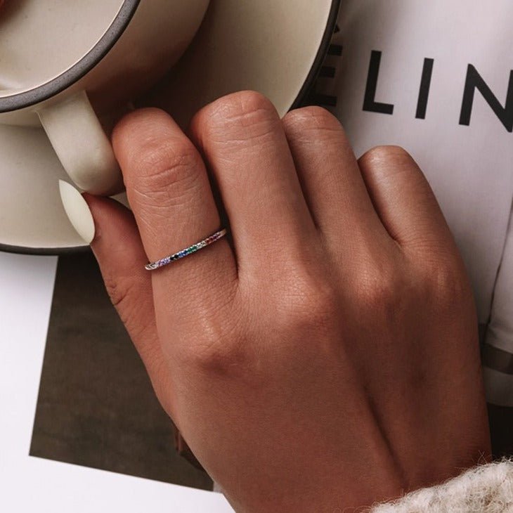 Nosso Anel com Cravejados de Zircônias Coloridas em Prata 925 conta com um design exclusivo e com cada detalhe pensado para completar e trazer mais beleza ao estilo de cada mulher. Prezamos pela alta qualidade das joias, utilizando os melhores materiais, livres de níquel, chumbo e todos hipoalergênicos.