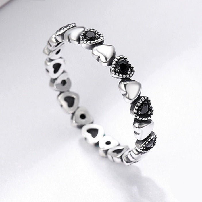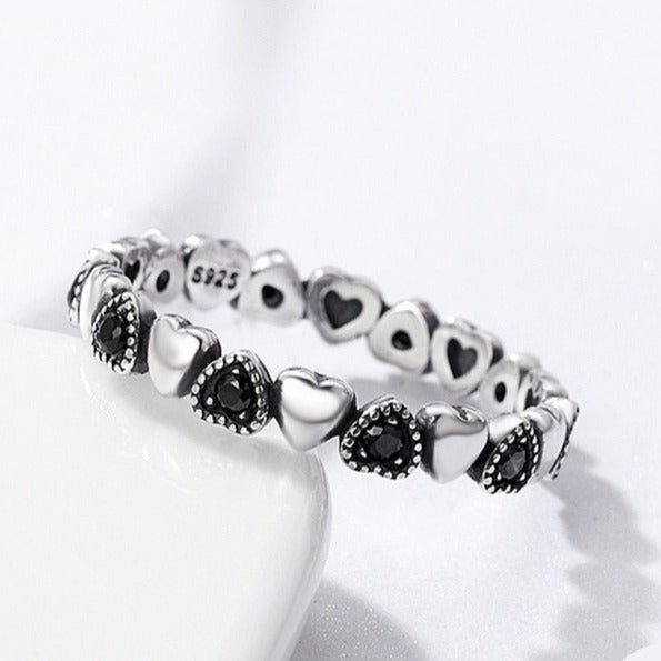 Nosso Anel Corações Black em Prata 925 conta com um design exclusivo e com cada detalhe pensado para completar e trazer mais beleza ao estilo de cada mulher. Prezamos pela alta qualidade das joias, utilizando os melhores materiais, livres de níquel, chumbo e todos hipoalergênicos.
