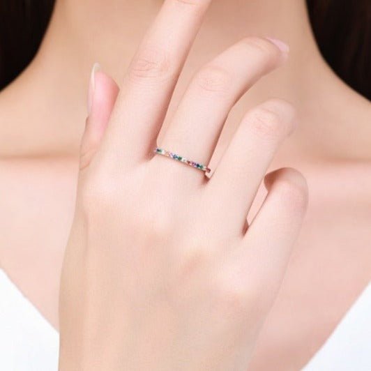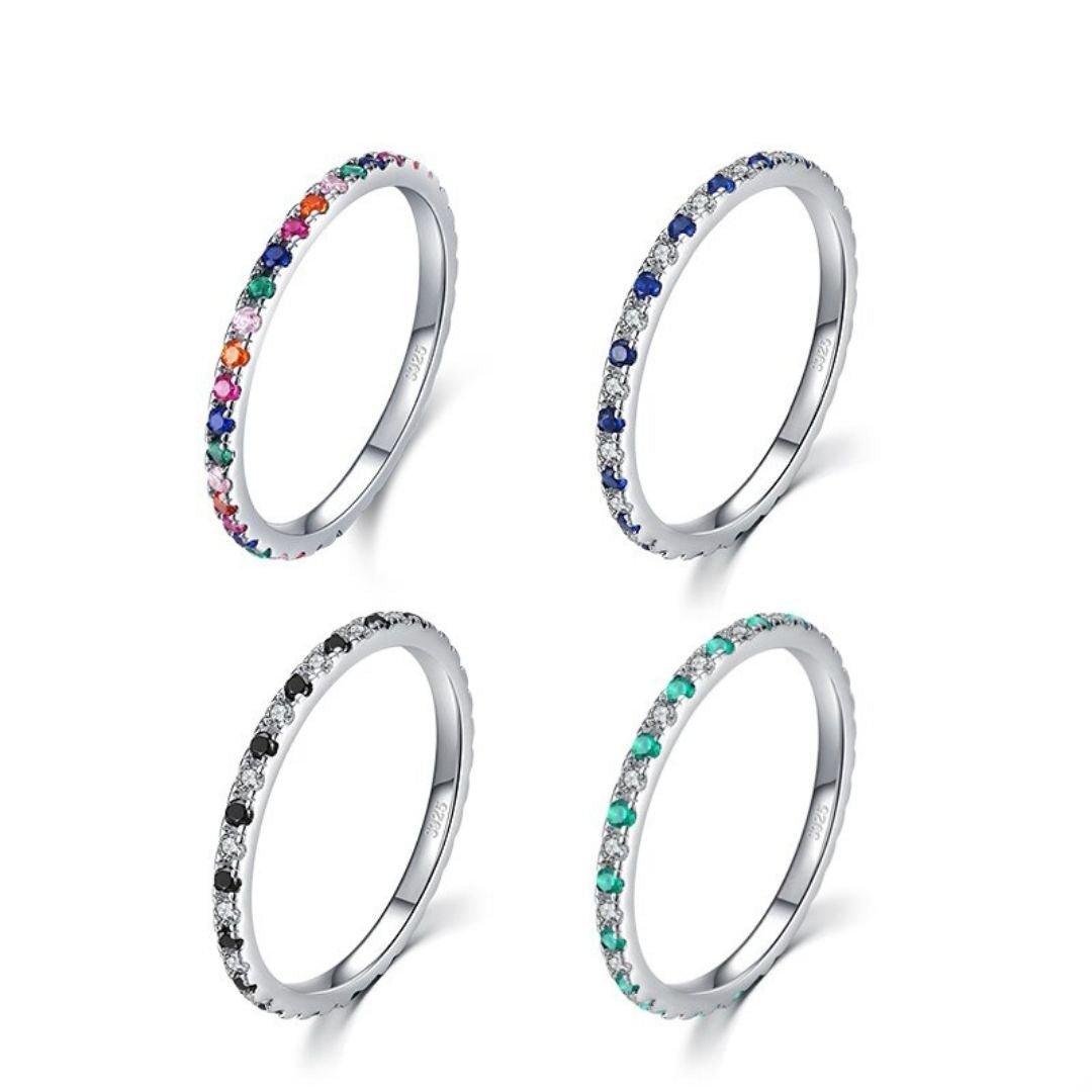 Anel Prata com Cravejados de Zircônias Coloridas