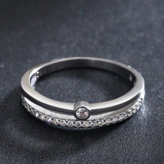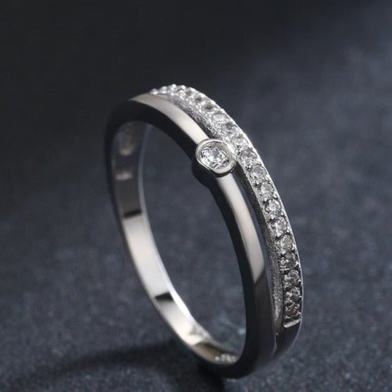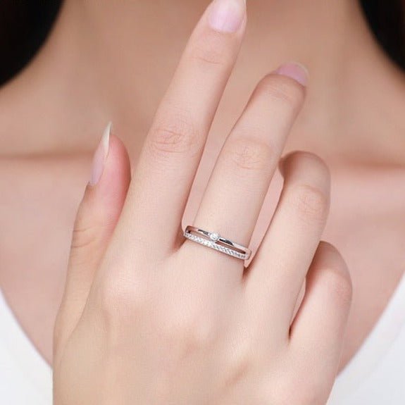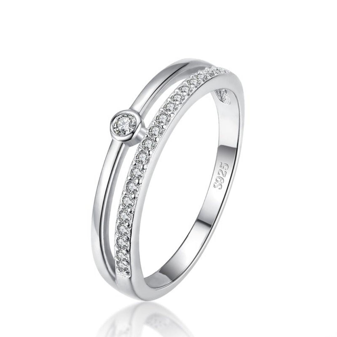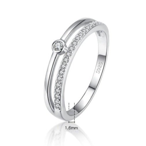 Anel Solitário Prata Duplo com Cravejados de Zircônia