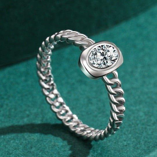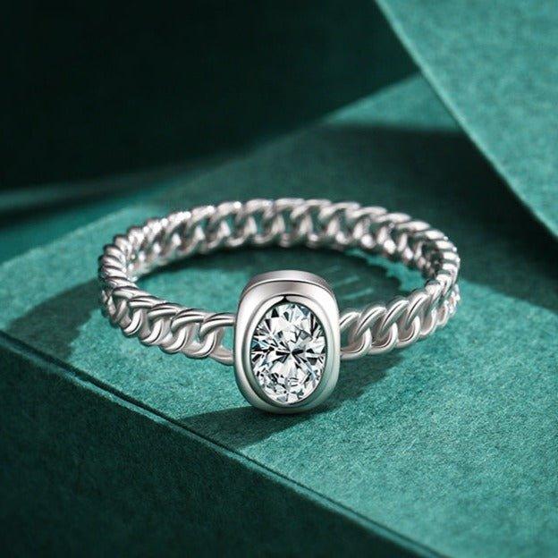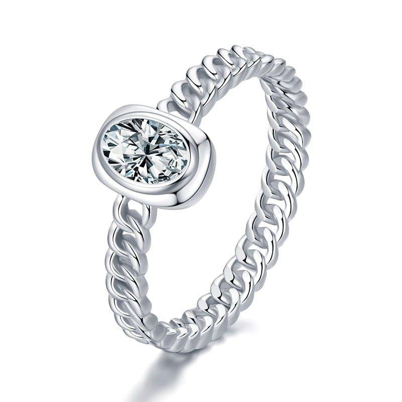 ANEL SOLITÁRIO OVAL TRANÇADO EM PRATA 925