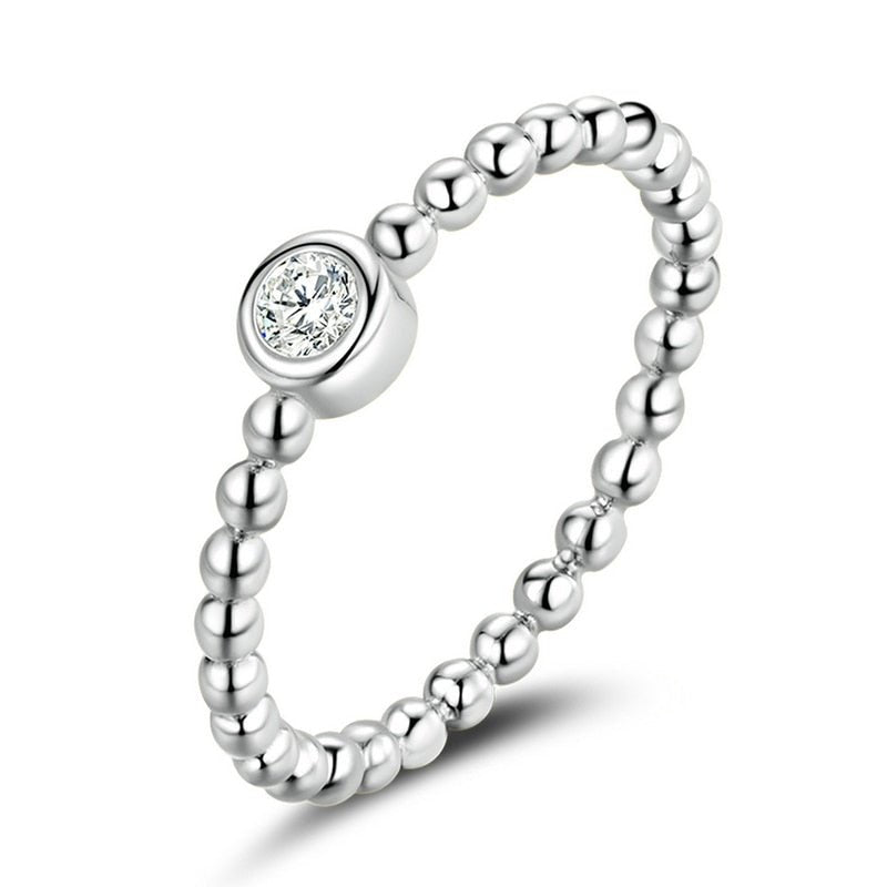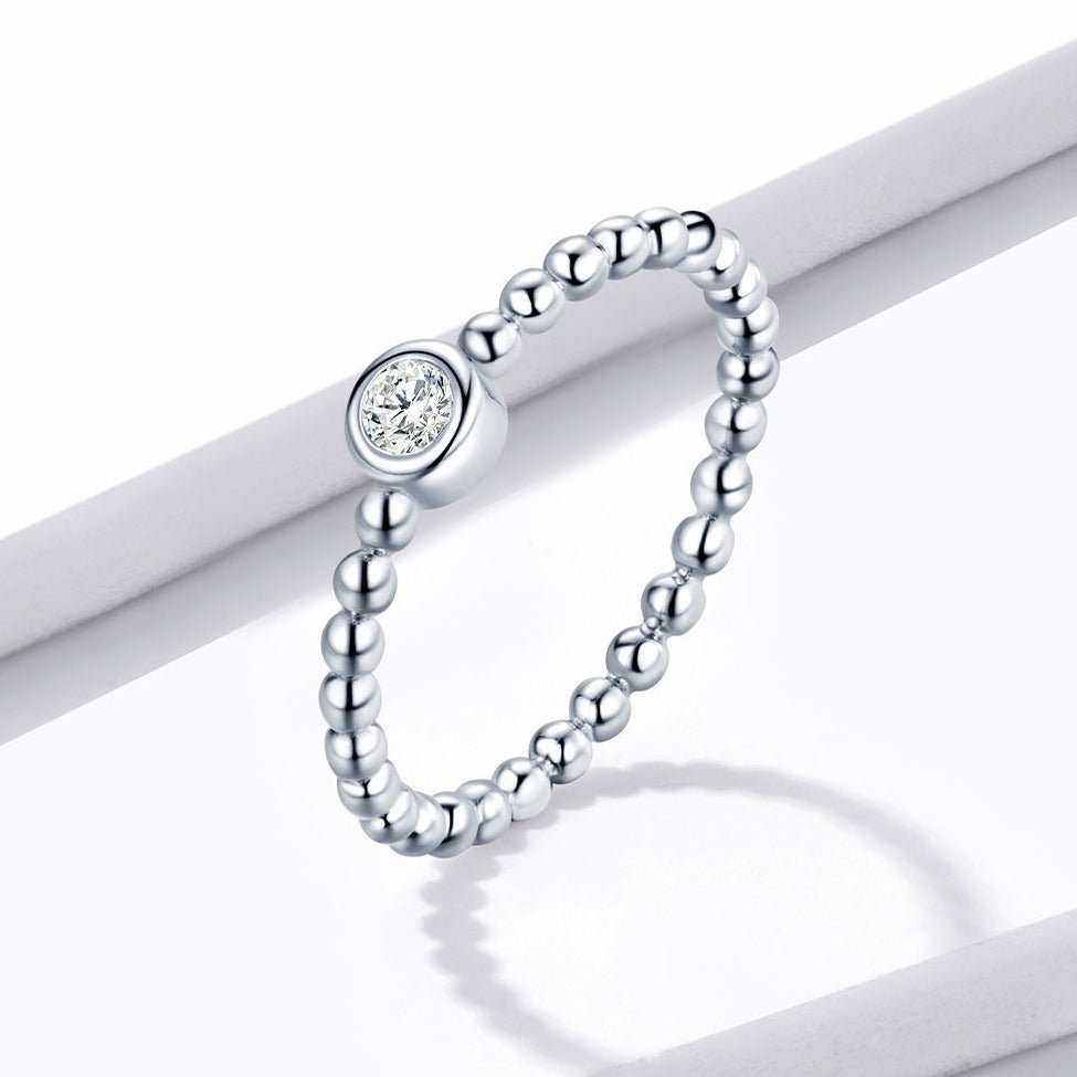Anel Solitário Ponto de Luz e Bolinhas Prata