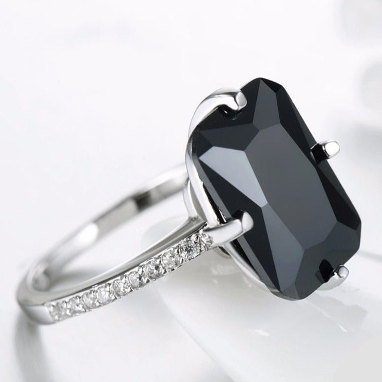 Anel Solitário Zircônia Preta Prata