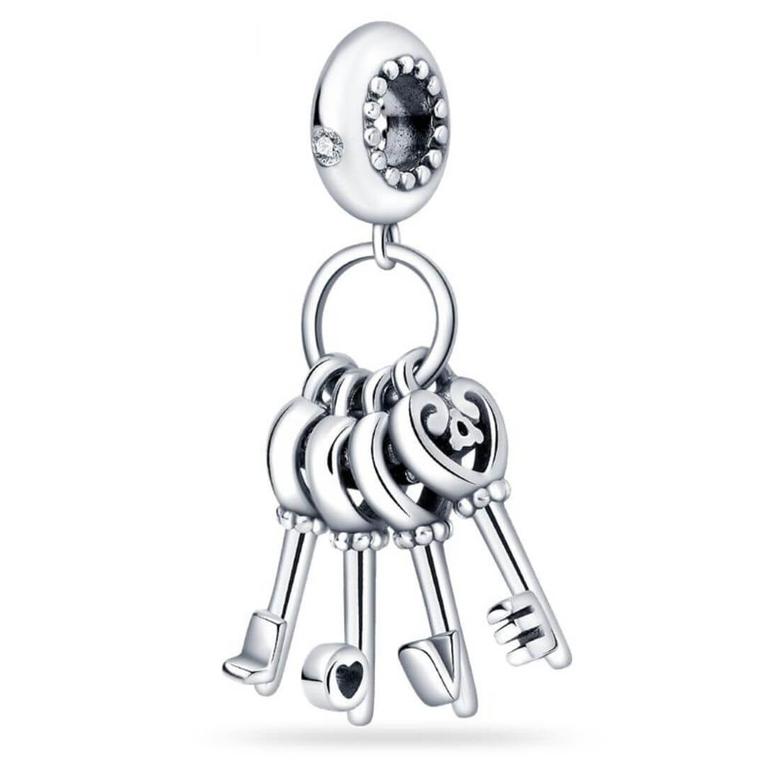 Berloque tipo pingente no formato de chaves, em Prata 925 (prata fina) compatível com pulseiras Pandora, Life Vivara e demais pulseira no mercado.