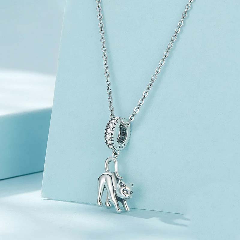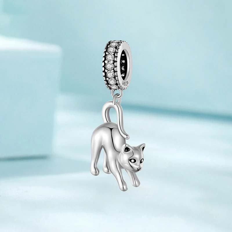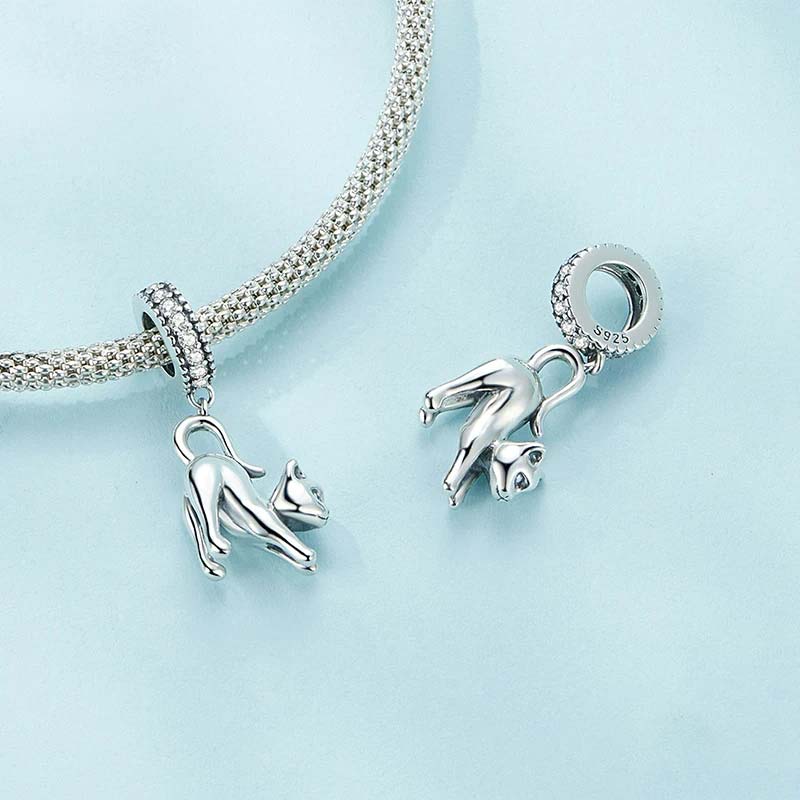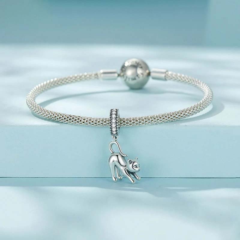 Berloque com Pingente Gato Espreguiçando ,em Prata 925 (prata fina) compatível com todas as pulseiras no mercado.