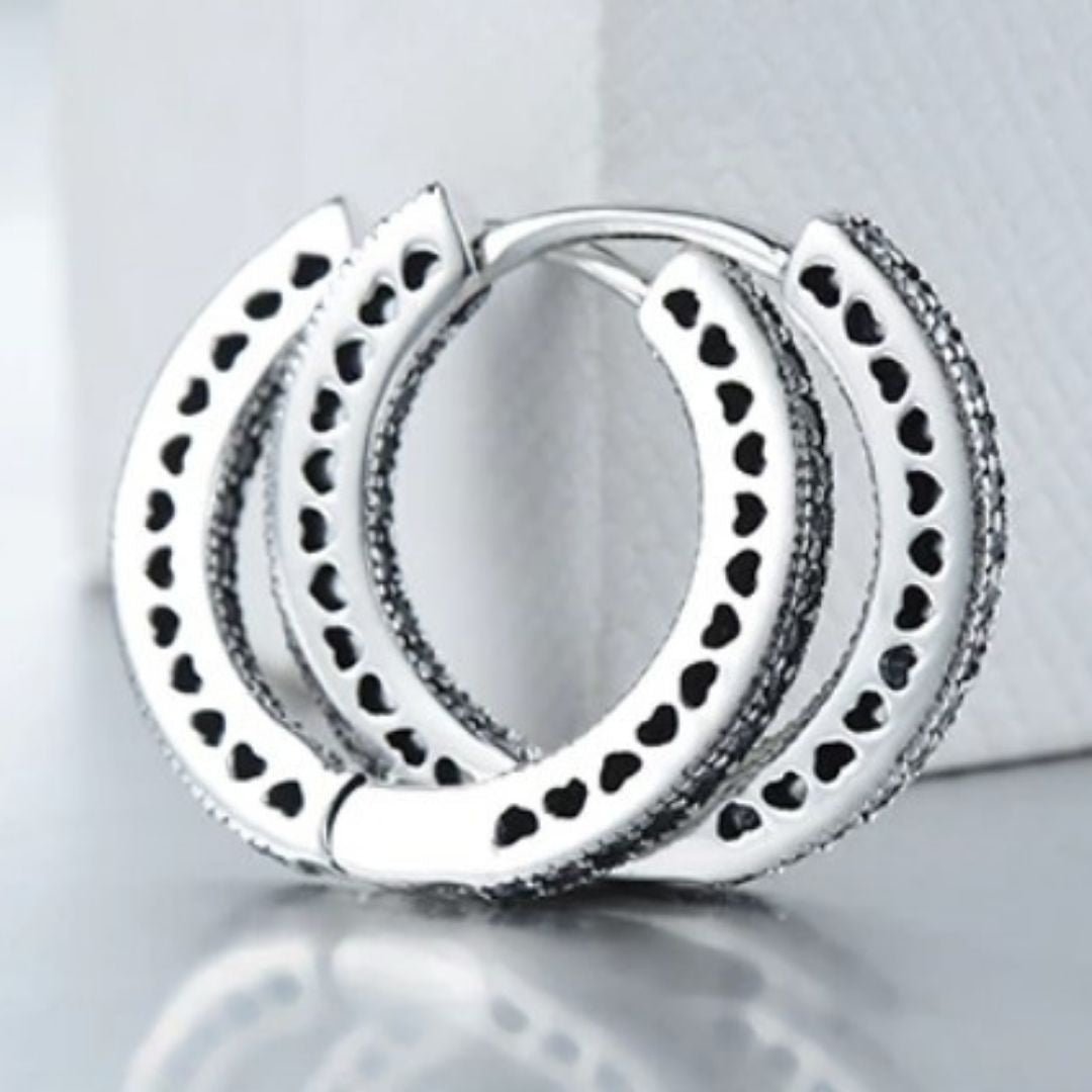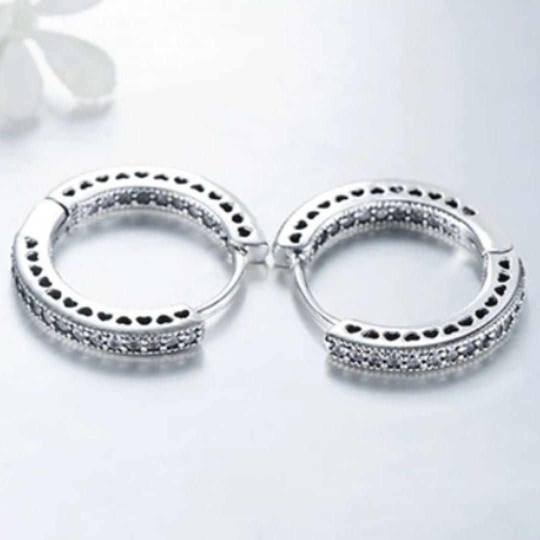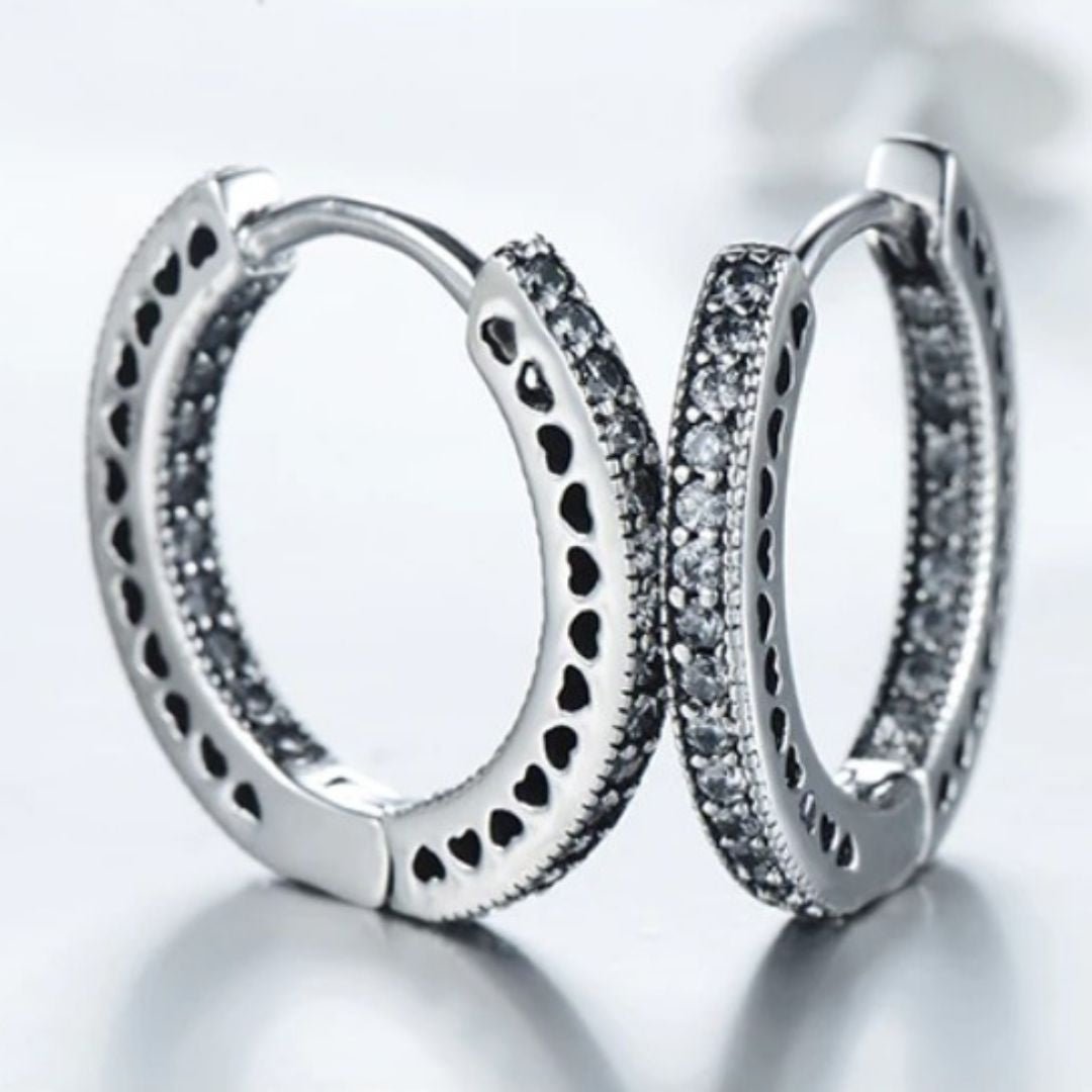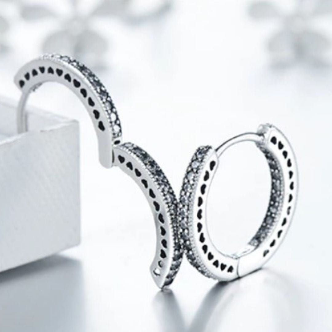 Nosso Brinco Argola Coração Romantic com Cristais de Zircônia em Prata 925 conta com um design exclusivo e com cada detalhe pensado para completar e trazer mais beleza ao estilo de cada mulher. Prezamos pela alta qualidade das joias, utilizando os melhores materiais, livres de níquel, chumbo e todos hipoalergênicos.