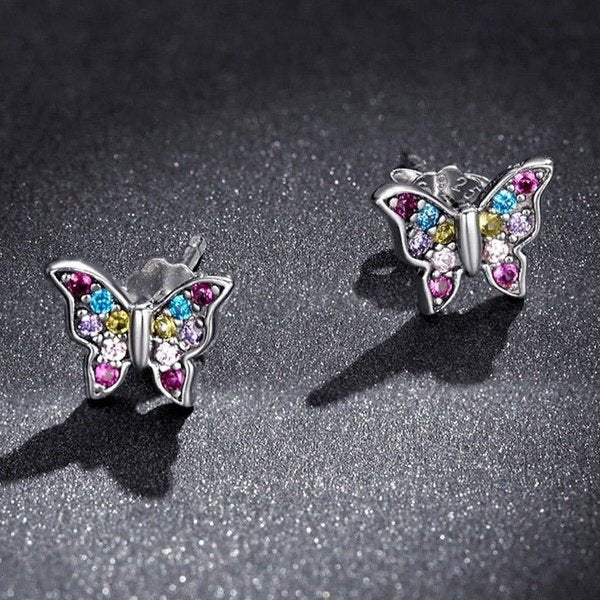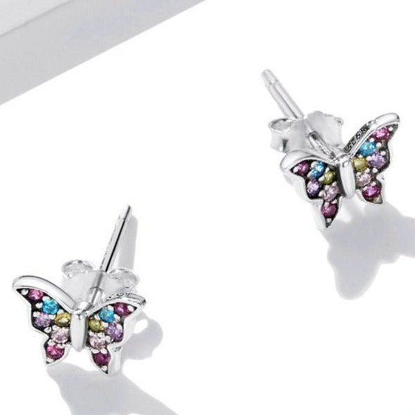 Nosso Brinco Borboleta Colorida em Prata 925 contam com um design exclusivo e com cada detalhe pensado para completar e trazer mais beleza ao estilo de cada mulher. Prezamos pela alta qualidade das joias, utilizando os melhores materiais, livres de níquel, chumbo e todos hipoalergênicos.