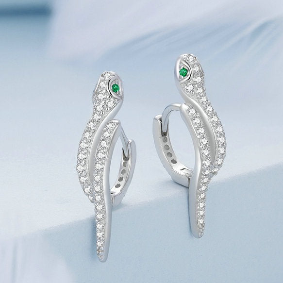 Brinco de Prata Serpente com Zircônias