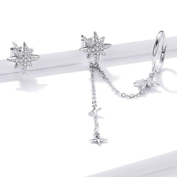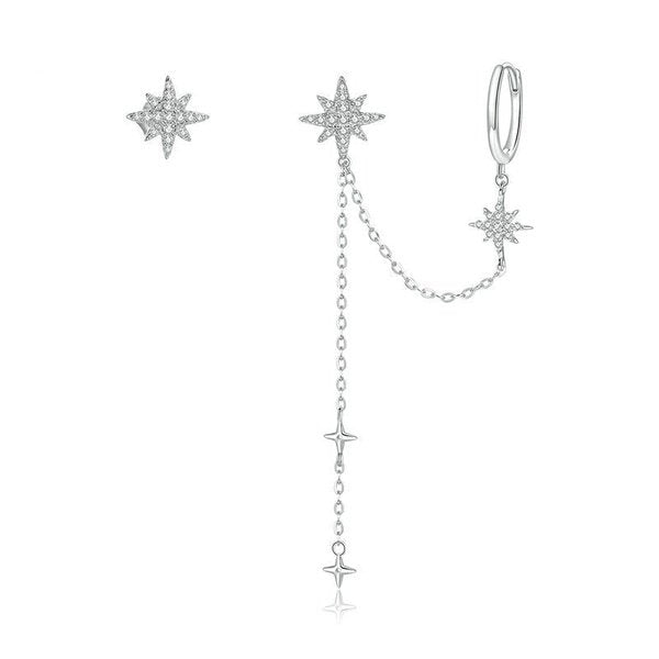 Brinco Prata Estrela com Corrente