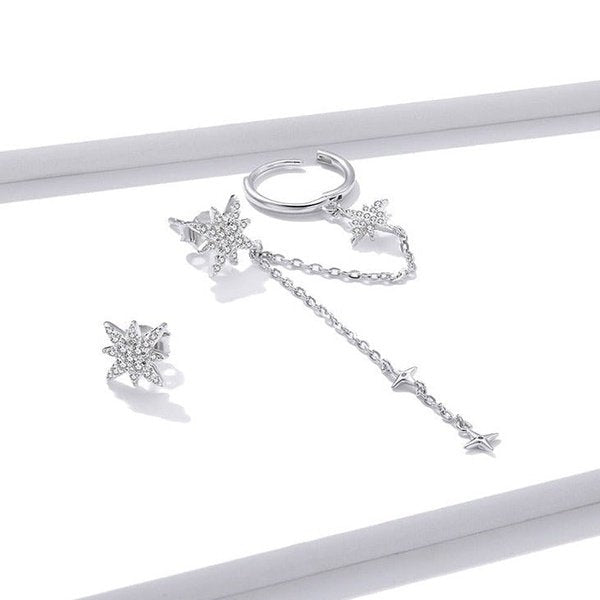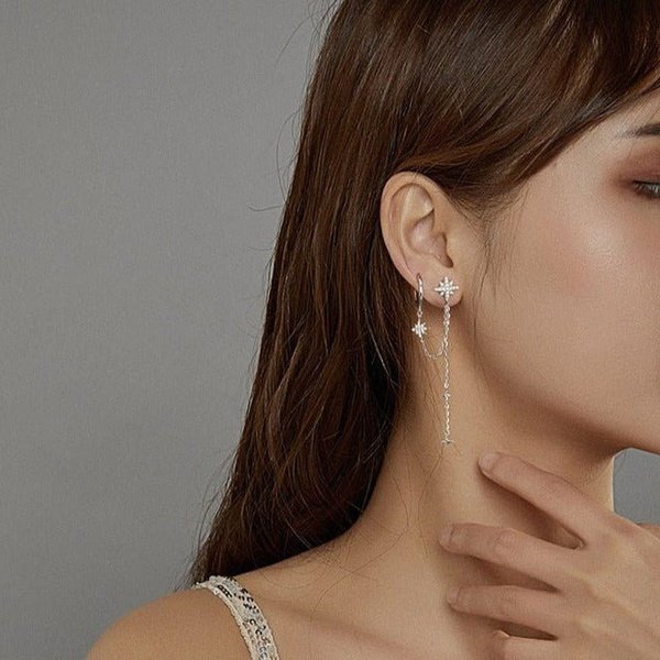 Nosso Brinco Estrela com Corrente em Prata 925 conta com um design exclusivo e com cada detalhe pensado para completar e trazer mais beleza ao estilo de cada mulher. Prezamos pela alta qualidade das joias, utilizando os melhores materiais, livres de níquel, chumbo e todos hipoalergênicos.
