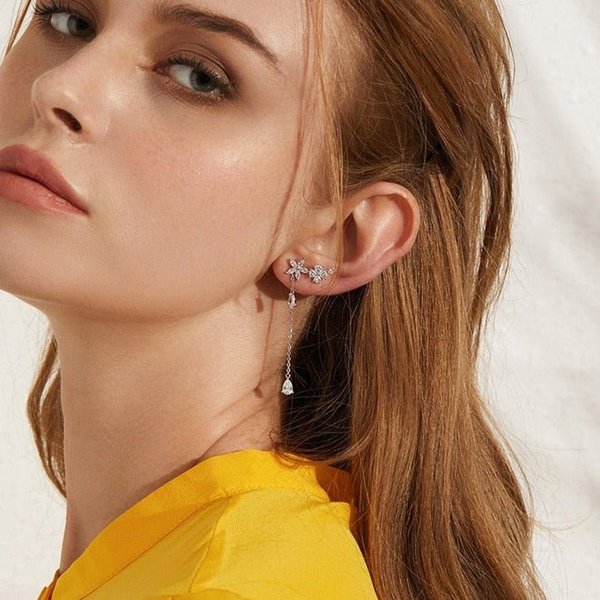 Nosso Brinco Longo com Estrela em Prata 925 conta com um design exclusivo e com cada detalhe pensado para completar e trazer mais beleza ao estilo de cada mulher. Prezamos pela alta qualidade das joias, utilizando os melhores materiais, livres de níquel, chumbo e todos hipoalergênicos.