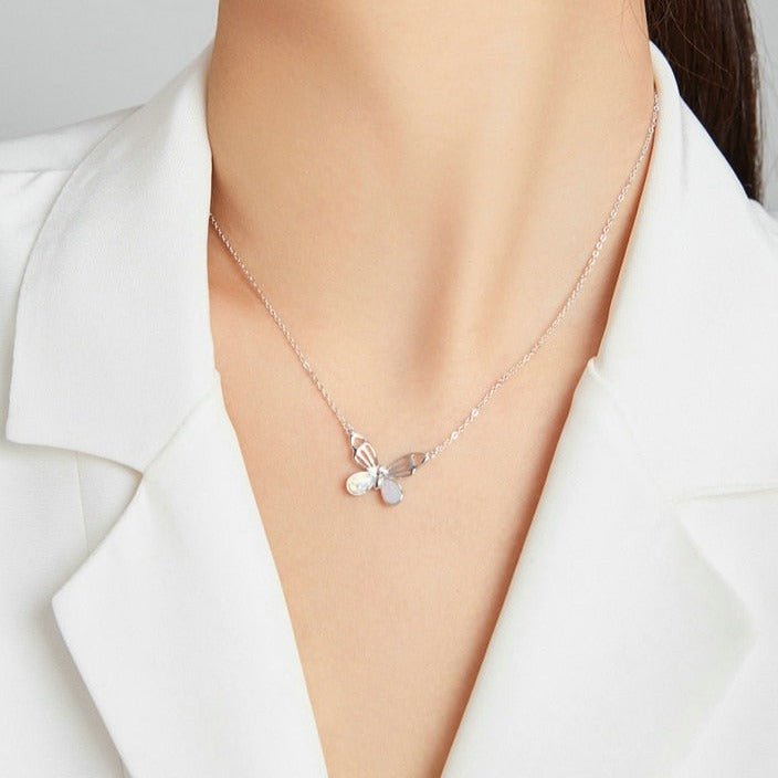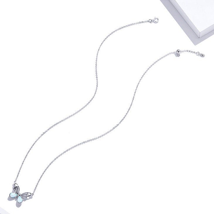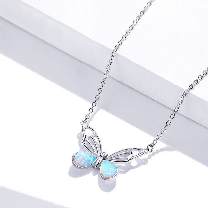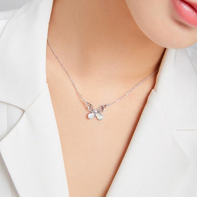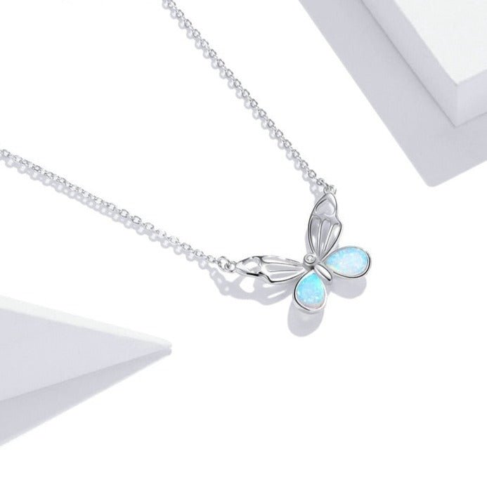 Colar Borboleta de Opala Prata