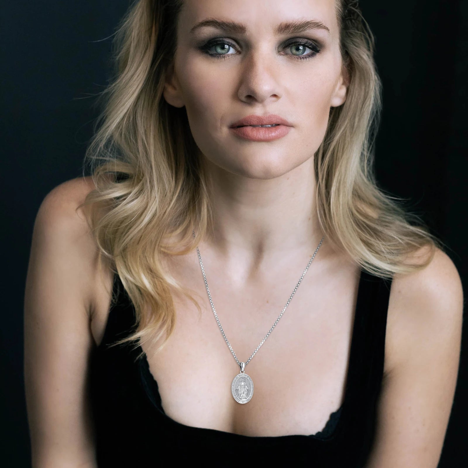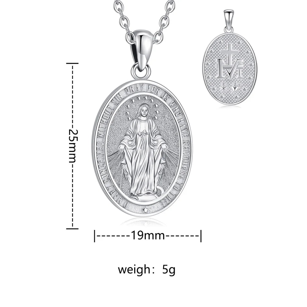 Colar com Pingente Virgem Maria, Santa Mãe, em Prata 925