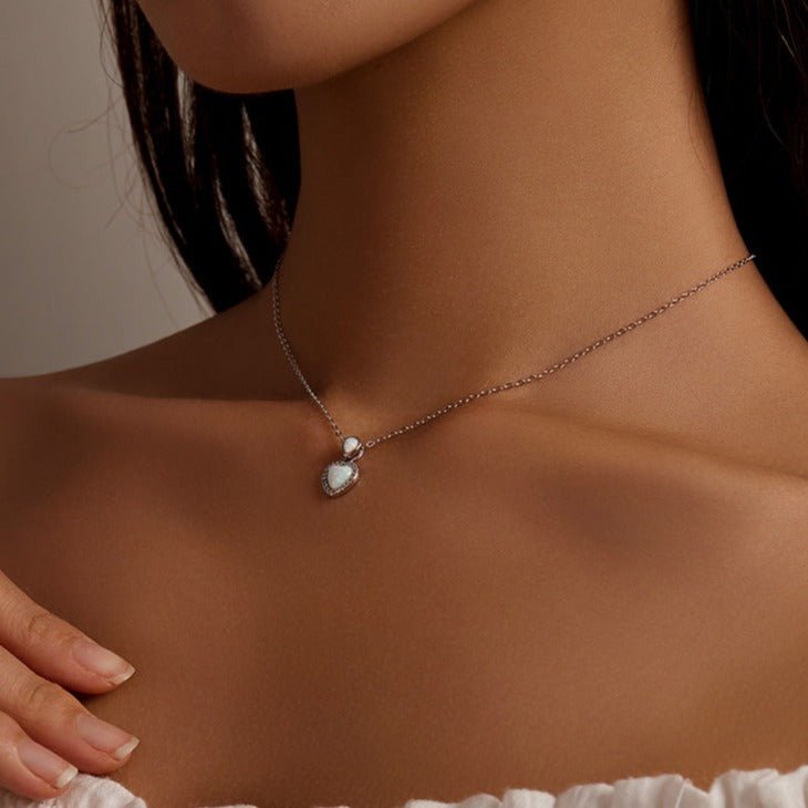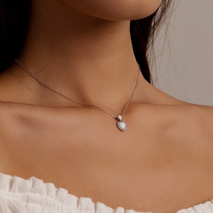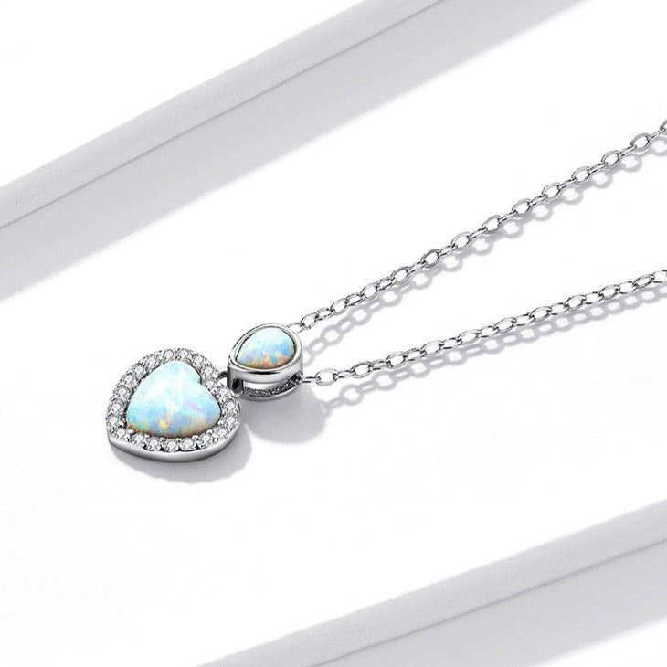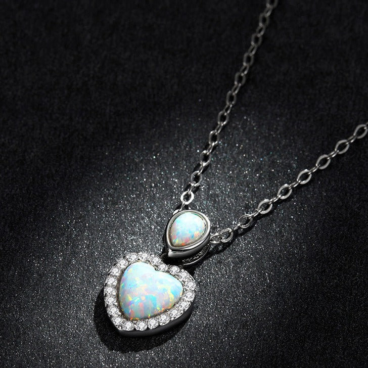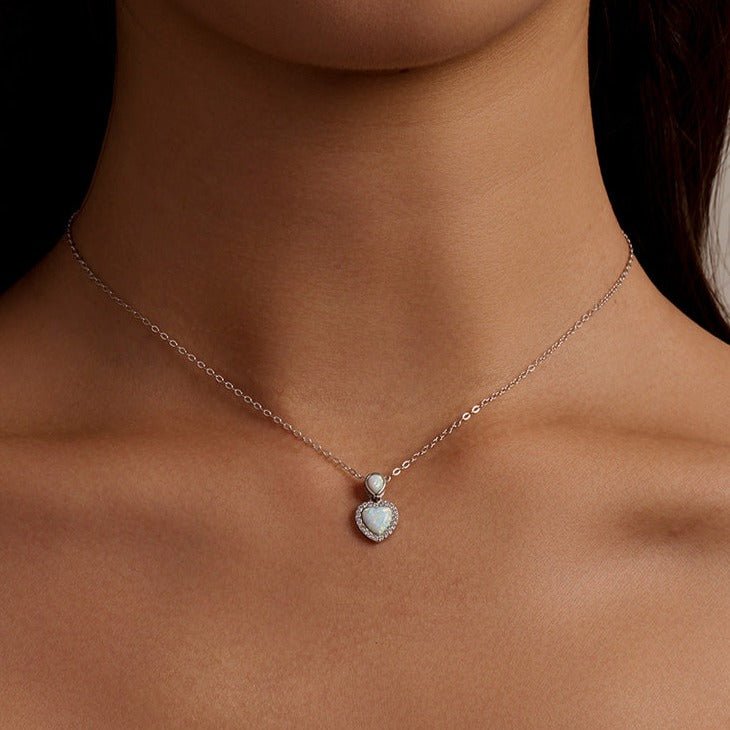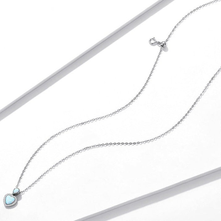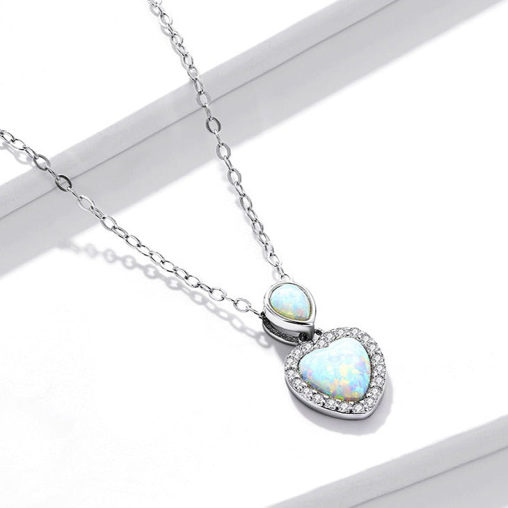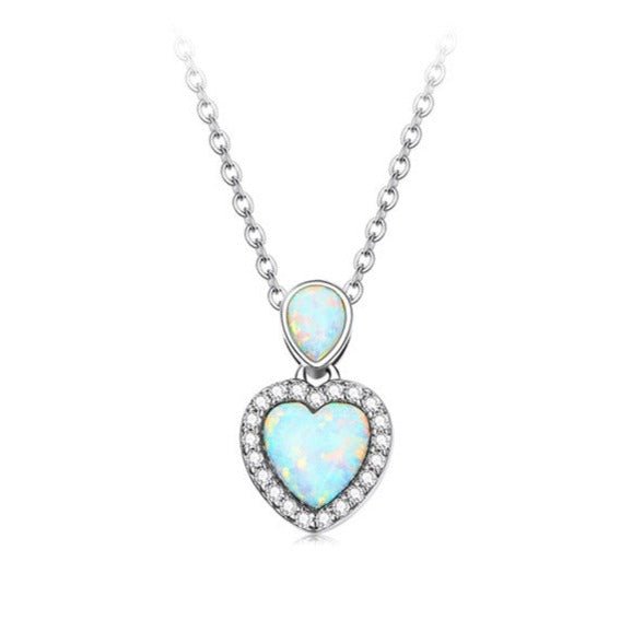 Colar Coração de Opala Cravejado de Zircônia Prata