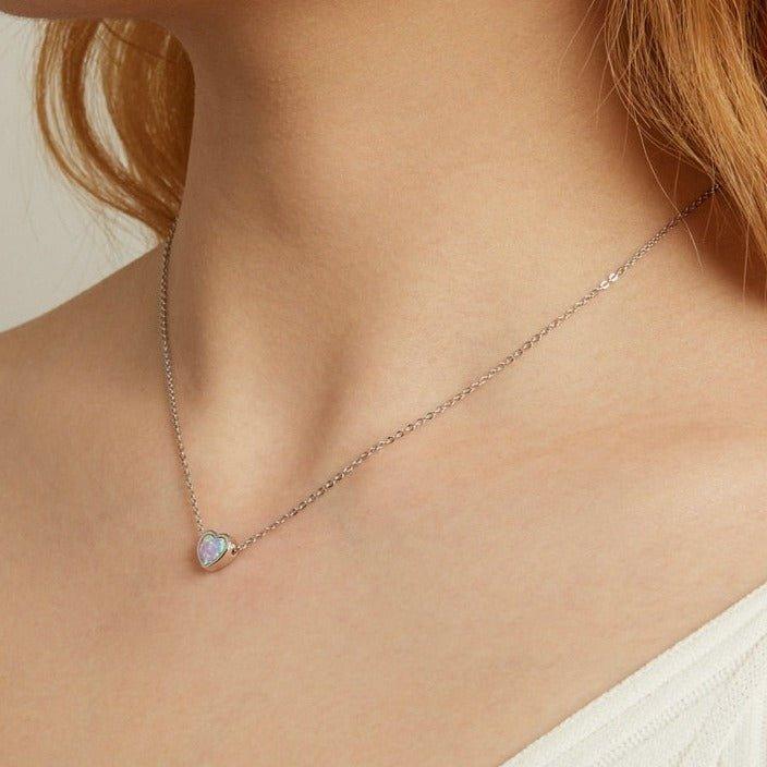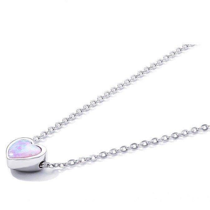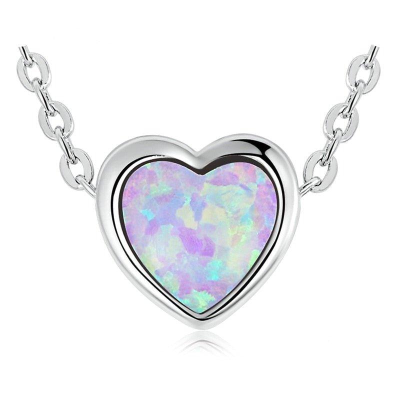 Colar Coração de Opala Prata