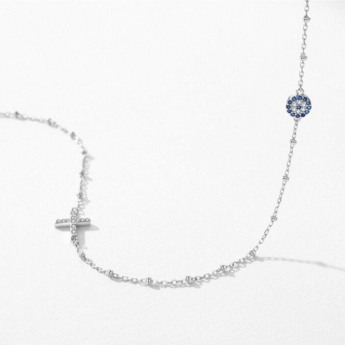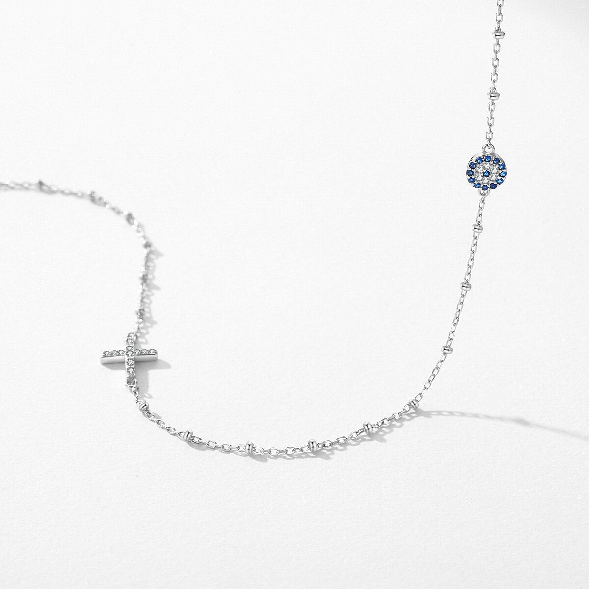 Nosso Colar de Prata Cruz e Olho Grego em Prata 925 conta com um design exclusivo e com cada detalhe pensado para completar e trazer mais beleza ao estilo de cada mulher. Prezamos pela alta qualidade das joias, utilizando os melhores materiais, livres de níquel, chumbo e todos hipoalergênicos.