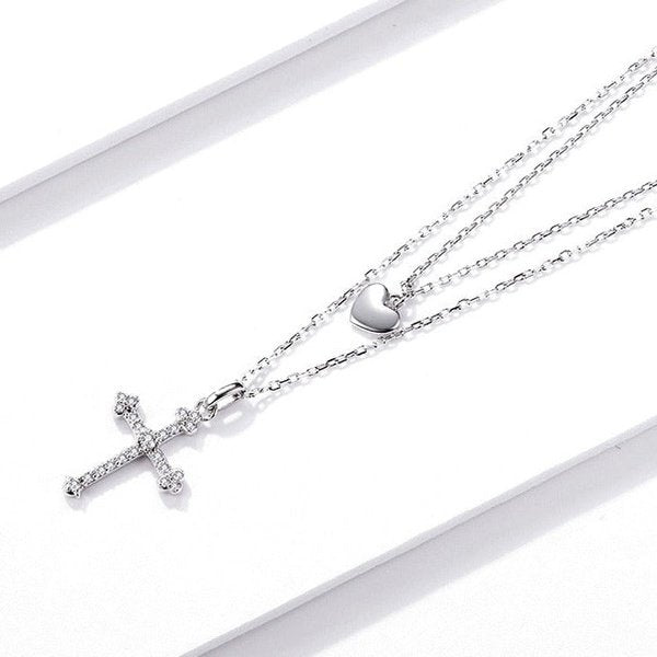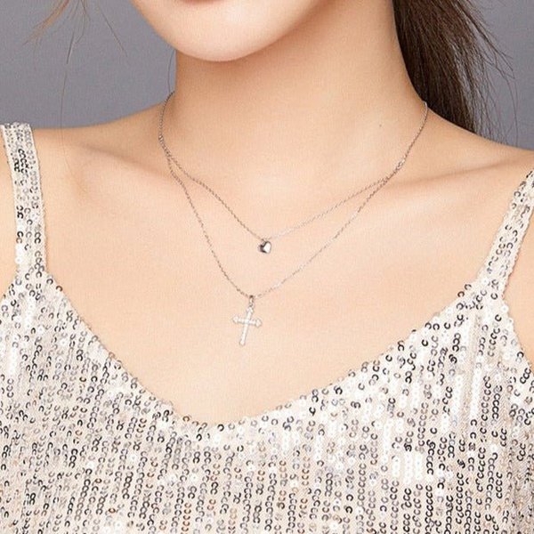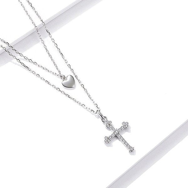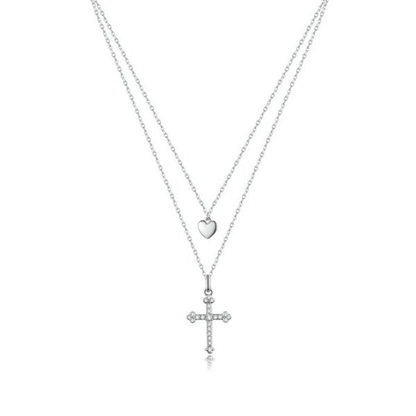 Colar Duplo Cruz Prata