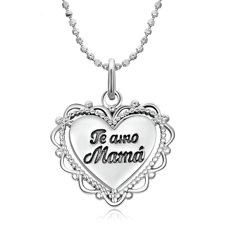 Colar Pingente Coração Te Amo Mamá Prata